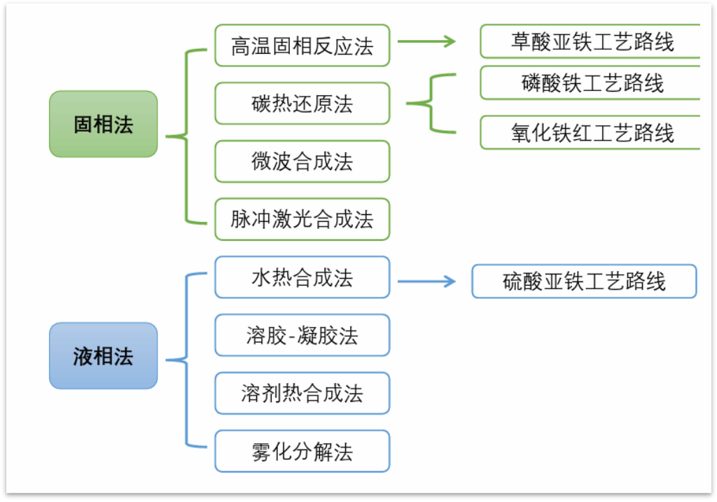 磷酸鐵鋰制備工藝多樣,主要分為固相法,液相法這兩大主流工藝。固相法是目前最成熟也是應用最廣的磷酸鐵鋰合成方法,液相法工藝難度較大。今天小編給大家介紹幾種磷酸鐵鋰制備工藝方法: